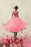 Roze Jurk | Roze Dans - Dit is een abstract schilderij van een vrouw in een roze jurk, waarbij de dynamische penseelstreken en de overvloed aan roze tinten een gevoel van beweging en levendigheid uitstralen.