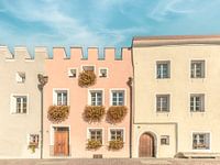 Pastel ensemble van historische gebouwen in het hart van Bruneck