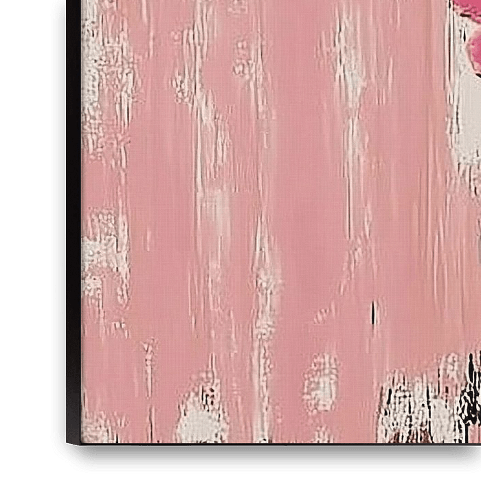 Roze Kippen | Felgekleurde Kip in Pinks - Op dit schilderij zie je een grote, felroze hen met een rode kam en poten, tegen een achtergrond van subtiele, lichtere tinten en texturen die de vrolijke uitstraling van het kippen schilderij versterken.