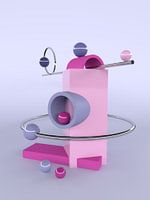 Driedimensionaal (3D) abstract design van basisvormen in de kleuren roze en paars. Vrolijk en kleurrijke moderne kunst. Ook verkrijgbaar in andere kleuren naar voorkeur.