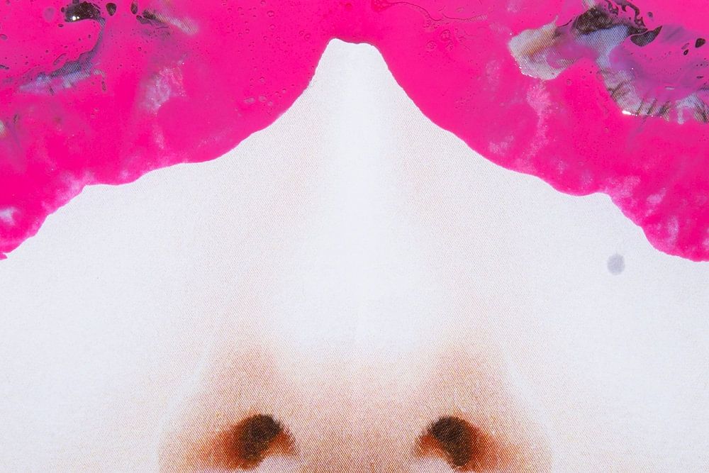 Schoonheidsidealen en de anonimiteit van fotobewerking op social media platformen. Een foto bewerkt met makeup om vervolgens weer gefotografeerd te worden. Een kleurrijk en modern portret.