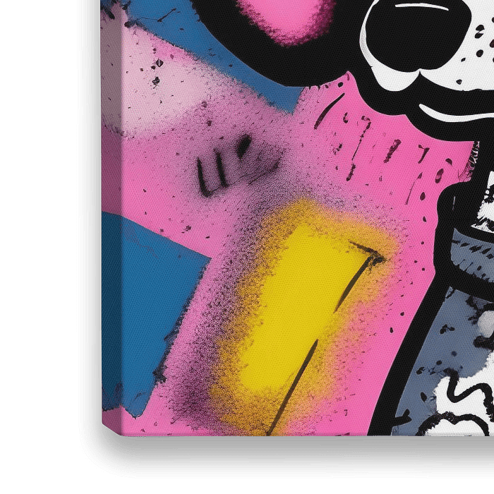 Duik in de urban jungle met dit kunstwerk: een rebelse lichtroze poedel die de show steelt tegen een bruisende graffiti achtergrond. Dit opvallende werk is een explosie van kleur en persoonlijkheid, een perfecte aanvulling op de ruimte van de moderne kunstliefhebber.