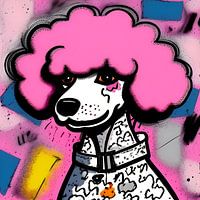 Duik in de urban jungle met dit kunstwerk: een rebelse lichtroze poedel die de show steelt tegen een bruisende graffiti achtergrond. Dit opvallende werk is een explosie van kleur en persoonlijkheid, een perfecte aanvulling op de ruimte van de moderne kunstliefhebber.