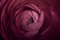 "Roze Ranonkel opent zich langzaam" is een bewerkte macrofoto van een roze (oudroze- fuchsia) Ranonkel waarbij de blaadjes nog net niet allemaal open zijn gegaan.