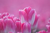Roze Tulpen in een prachtig Hollands Bollenveld. Het blijft een prachtig gezicht als de eerste tulpen weer gaan bloeien. Deze prachtige roze tulp steekt er met zijn kop net bovenuit.