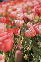In de voorjaarszon bloeien de tulpen aan het 1813 plein in Den Haag.