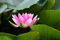 Een close-up van een roze Waterlelie in bloei in een vijver. Een prachtige bloem welke een gevoel van zomer oproept.