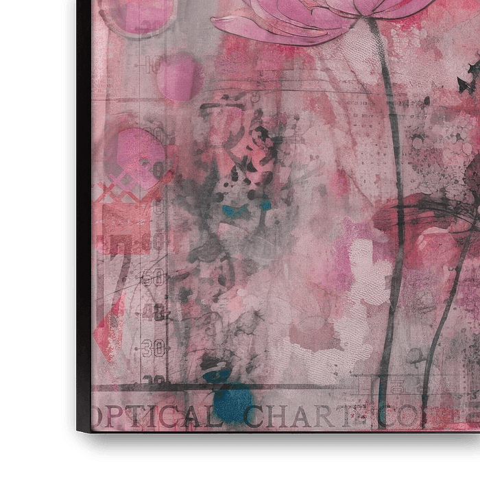 Gemengde mediakunst in roze met bloemenelementen en handschrift