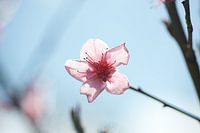 Een close-up van een roze bloemetje van een appelboom in de lente.