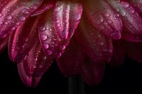 Gerbera bloem close up macro in kleur met druppels. Een prachtige foto in in kleur waardoor het roze en zwart van het scherm spatten. Bloemen en planten zijn helemaal in voor aan de muur.