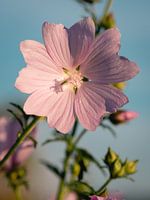 Macrofoto van een zeldzame bloem in Nederland met zacht blauw achtergrond.