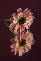 Roze bloemetje samen met zijn spiegelbeeld van Marjolijn van den Berg