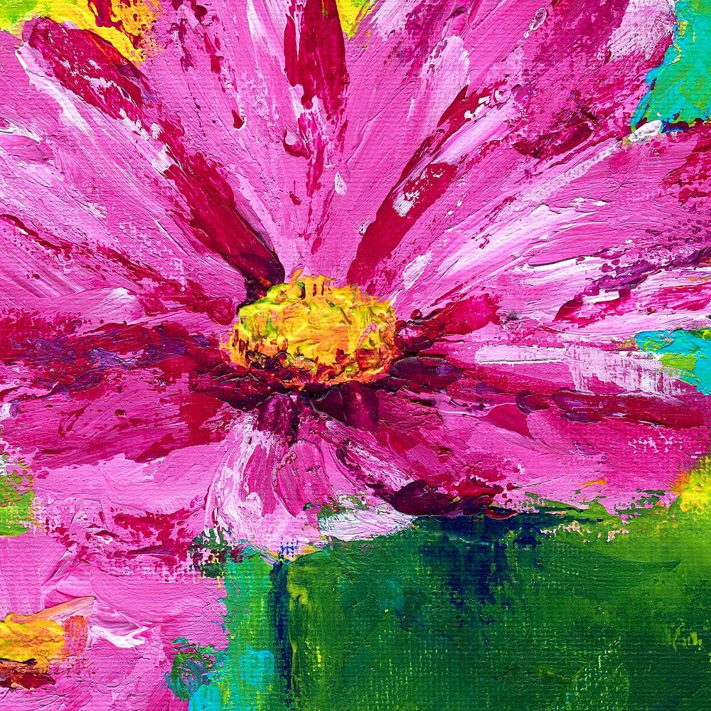 Pink Cosmea Flowers is een acrylschilderij in vierkant formaat met de hand geschilderd door de kunstenaar Karen Kaspar.
