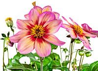 Roze dahlia bloesems op een witte achtergrond