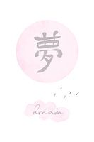 Modern minimalistisch ontwerp met een kanji-karakter "droom". De Japandi-stijl combineert traditionele Japanse elegantie met Scandinavische moderniteit, wat resulteert in harmonie en eenvoud.