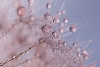 Koop dit bloemen kunstwerk Roze druppeltjes schitteren op een pluisjes van een paardenbloem van Marjolijn van den Berg op canvas, aluminium dibond, (ingelijste) fotoprint, behang en ArtFrame, op maat geprint in Fine-Art kwaliteit.