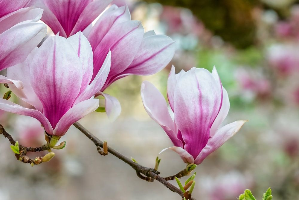 Roze en wit bloeiende magnolia bloemen