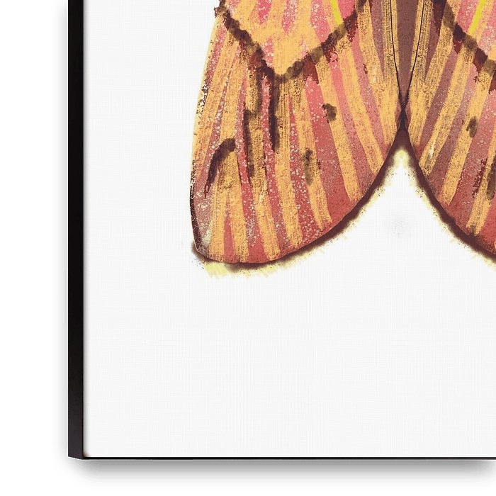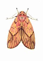 Mot roze geel op witte achtergrond. Deze mot is er 1 uit een serie mot illustraties. Heb je wel eens op de kleuren en patronen van motten gelet? Prachtig toch?!
