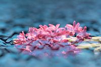 Koop dit bloemen kunstwerk Roze hyacinth bloem op blauwe water achtergrond van Lisette Rijkers op canvas, aluminium dibond, (ingelijste) fotoprint, behang en ArtFrame, op maat geprint in Fine-Art kwaliteit.