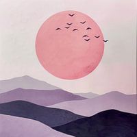 Dit prachtige kunstwerk toont een zachtroze zonsondergang aangevuld met een groep vliegende vogels. De harmonieuze combinatie van de pastelkleuren en het minimalistische landschap creëert een rustgevende sfeer, perfect voor woonkamers, slaapkamers of kantoren. Een ideaal stuk voor iedereen die houdt van moderne en toch dromerige decoraties. Geef je ruimte een vredig en elegant tintje met deze prachtige muurschildering.