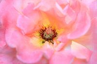 Prachtige close up macro opname van het hart van een grote roze Pioenroos (Paeonia) in de tuin