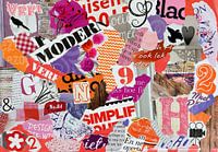 Collage gemaakt van oud papier met vrolijk thema met rood, oranje en roze kleuren concept.