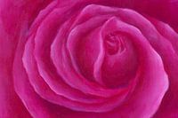 Roze roos spiraal is een acrylschilderij in landschap formaat met de hand geschilderd door de kunstenaar Karen Kaspar. Een close-up toont een felroze roos waarvan de bloemblaadjes zich zachtjes ontvouwen in een spiraal. Tinten roze geven de bloesem diepte en dimensie en benadrukken de natuurlijke schoonheid van de bloem.