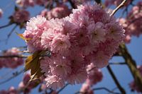 Een roze bloemendroom in de lente. Warm zonlicht verlicht de tere bloesems van een sierkers. Deze close-up is gewijd aan de tere en zachte bloemblaadjes, die juist op dit moment hun volle schoonheid ontvouwen.