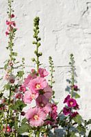 Deze mooie roze stokroos staat voor een wit gekalkt oude muur. De stokroos (Alcea rosea, synoniem: Althaea rosea) is een tweejarige plant uit de kaasjeskruidfamilie (Malvaceae). Volksnamen zijn balroos, flier, boerenroos en heemst, al is deze laatste naam misleidend, omdat heemst de officiële naam is van een andere plant in de…