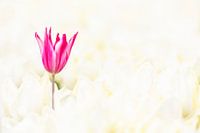 Koop dit bloemen kunstwerk Roze tulp in een wit tulpenveld. van Ron van der Stappen op canvas, aluminium dibond, (ingelijste) fotoprint, behang en ArtFrame, op maat geprint in Fine-Art kwaliteit.