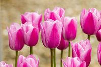 Deze mooie roze tulpen zijn lekker vrolijk. Door de neutraal beige achtergrond passen ze in vele interieurs en soorten ruimtes. Haal een stukje natuur in huis met deze bloemen.