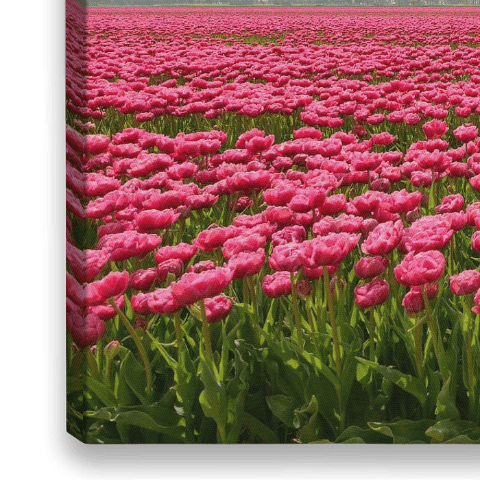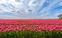 Roze tulpen in een veld in de Noordoostpolder tijdens een mooie lente dag.