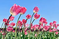 Roze tulpen in een bollenveld in Drenthe.