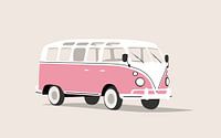 Abstracte illustratie van een roze Volkswagen busje op een licht warm grijze achtergrond. De kleuren geven een mooie frisse look!