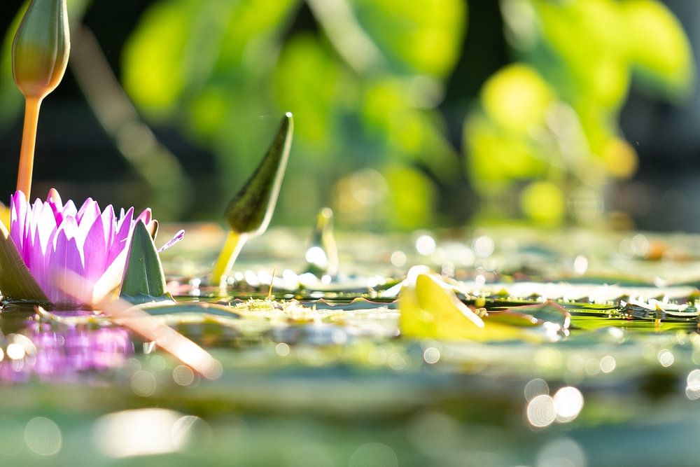 Mooi portret van een roze waterlelie in de botanische tuin in Freiburg.