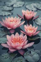 Roze waterlelies drijven op kalm water van Art & Soul Creations