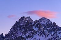 Roze gekleurde wolk in de zonsondergang boven de toppen van de Dolomieten, Zuid-Tirol, Italië