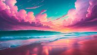 Roze wolken met landschap en zonsondergang
