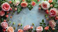 Blush roze rozen frame op witte achtergrond. Diverse roomroze rozen bloemen en knoppen lay-out op witte achtergrond met kopieerruimte. Bovenaanzicht, plat liggend