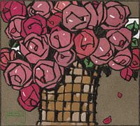Over ‘Rozenboeket (sjabloon voor het plakkaat van damesmodehuis Mayer Sundheimer), Ludwig Hohlwein - 1909’ van Atelier Liesjes