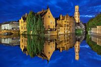 Rozenhoedkaai in Brugge in België met blauwe uurreflectie