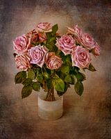 De compositie van dit werk is met opzet eenvoudig gehouden, met de rozen in een klassieke vaas tegen een neutrale achtergrond. Dit zorgt ervoor dat de aandacht volledig op de bloemen zelf gericht is, waardoor de kijker zich kan verliezen in de details van elke bloem. De textuur van de bladeren en de delicate kronkels van de bloemblaadjes nodigen uit tot een moment van stille contemplatie.