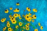 Deze bloemen (Rudbeckias) groeien voor mijn garage uit het beton. Het beton heb ik blauw gemaakt want geel en blauw staan tegenover elkaar. En ik vind dat gewoon een leuke kleurencombinatie.