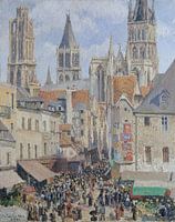Tegen de tijd van de vierde bezoek Pissarro naar Rouen in 1898, was hij al bekend met de motieven daar. ' De kunstenaar afgeschilderd veel van dezelfde stadsgezichten die hij eerder had aangepakt, maar ook scouted nieuwe scènes, zoals deze. Op 19 augustus, schreef hij aan zijn zoon Lucien: 'Gisteren heb ik vond een uitstekende plek van waaruit ik kan schilderen de rue de l'Épicerie en zelfs de markt, een heel interessant, die plaatsvindt elke vrijdag.'