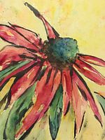 Koop dit bloemen kunstwerk Ruig geschilderde rode bloem op gele achtergrond (modern abstract aquarel schilderij zomer vrolijk) van Natalie Bruns op canvas, aluminium dibond, (ingelijste) fotoprint, behang en ArtFrame, op maat geprint in Fine-Art kwaliteit.