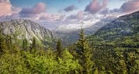 Langs de Alaska Highway zijn prachtige uitzichtpunten. Daar ontvouwt zich een ongerept natuurgebied met meren, bergen en bossen.