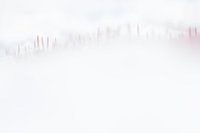 Ruighaarmos in winterse sferen, de oranje sporenkapsels komen nog net boven de sneeuw uit. Er ontstaat door de sneeuw een rustig en abstract beeld.