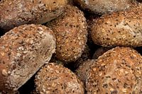 Harde broodjes die zijn afgebakken in een bakkersover. De broodjes zijn donker en bevatten voedzame pitjes.