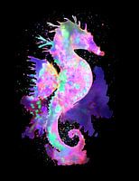 surrealistisch kunstwerk in paarse kleuren van een mist die zich vormt tot het silhouet van een zeepaardje.