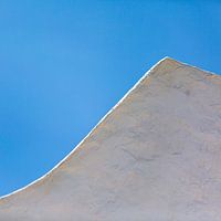 Ik zoek naar de grens tussen eenvoud en expressie. Dit abstracte fotowerk belichaamt die zoektocht—een vloeiende, golvende lijn die zich aftekent tegen de oneindige helderheid van de lucht. Het is een dialoog tussen architectuur en natuur, tussen vorm en leegte. De ruwe textuur van het materiaal contrasteert prachtig met de zachte, effen achtergrond, waardoor een subtiele spanning ontstaat die blijft intrigeren.